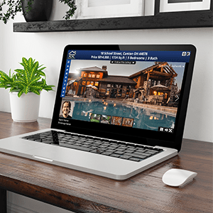Custom Branded Tour displaying listing photos, contact information, and additional media for the property.